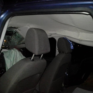 A causa dei giri persi momentaneamente conoscenza e quando la macchina si fermò non sapevo cosa fosse successo ma vidi il vetro completamente a pezzi a 2 cm dal mio occhio, quindi per uscire più velocemente possibile presi a spallate la portiera.